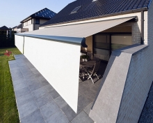 En version de base la banne solaire Corfou peut être laquée en blanc, ivoire ou brun. Tous les autres coloris RAL aux choix lisses ou structurés sont aussi disponibles en option.